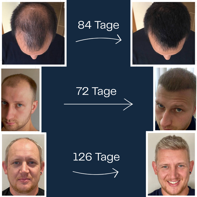 Unsere exklusive, enorm verbesserte Formel sichert dir garantiertes Haarwachstum. Sichtbar stärkeres und dichteres Haar, auf das du dich verlassen kannst.